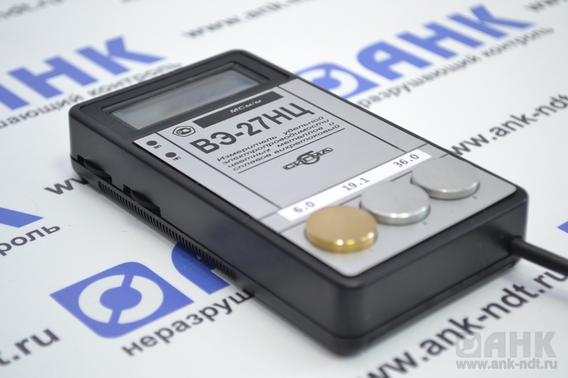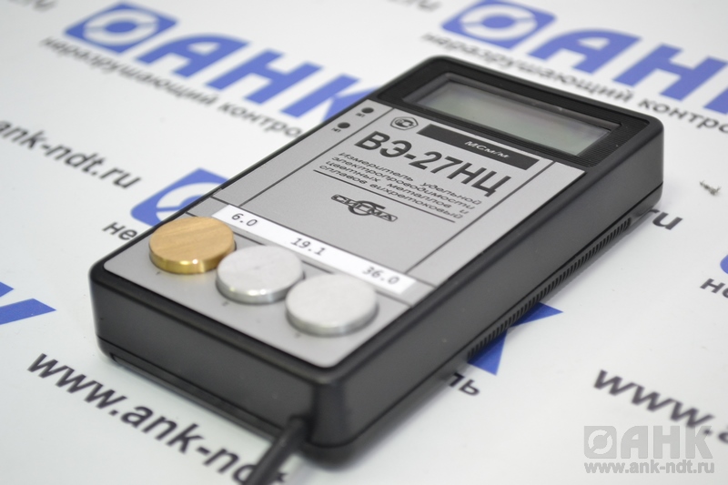 Действие компактного, надежного, удобного в использовании измерителя вэ 27нц основано на измерении параметров вихревого поля, возбуждаемого в поверхностных слоях исследуемого тела. Для создания поля и замера его характеристик прибор оснащен выносным преобразователем. Информация поступает на электронный блок, где производится ее первичная обработка, расчет параметров. Основное назначение ВЭ-27НЦ – измерение удельной электропроводности немагнитных материалов: цветных металлов, различных сплавов.