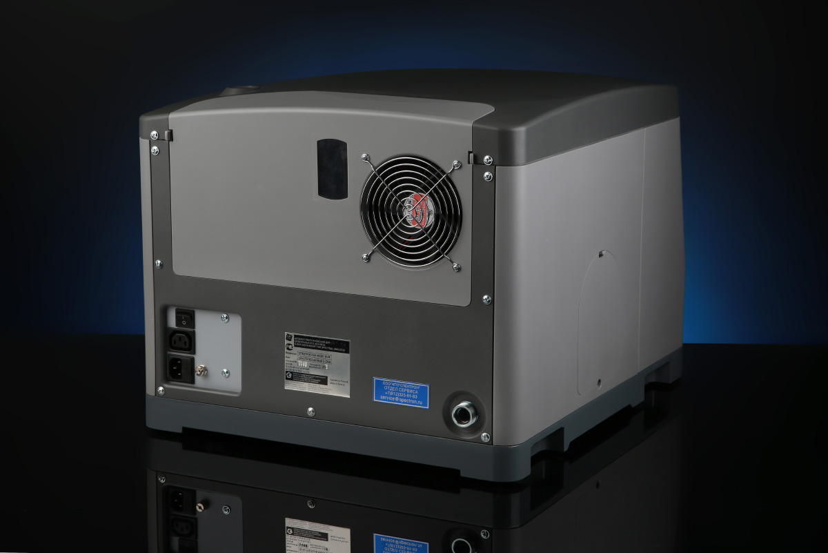 Конструктивно спектрометр состоит из двух блоков: спектрометрического блока, со встроенной системой водяного охлаждения и блока вакуумного насоса.