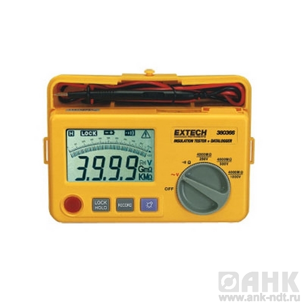 Тестер изоляции + регистратор данных Extech 380366 с автоматическим переключением измерений изоляции до 4000MОм. С испытательным напряжением 250/500/1000В и тестовым током 1мА. Измерение переменного тока до 600В. Индикатор размыкания цепи, превышения диапазона и индикатор уровня заряда батареи.
