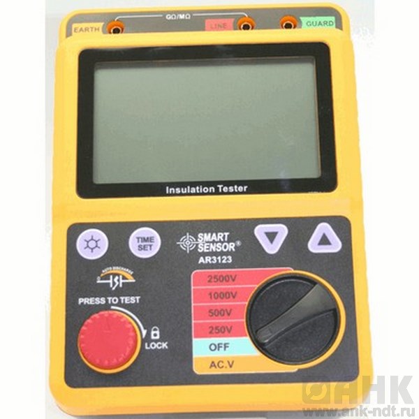 Мегаомметр AR3123 является базовым измерителем сопротивления изоляции. Измеритель сопротивления изоляции в состоянии применяться для ремонта устройств и приборов на базе электромастерской. Электрический тестер имеет информативный жидкокристалический экран большого размера. Измеритель изоляции оснащен двухуровневой защитой от перегрузок. Тестер этой модели широко используется в энергетической отрасли. Модель AR3123 в состоянии измерять напряжение от 30 до 60 В, т.е. одновременно является вольтметром. Тестер изоляции может быть подвержен при необходимости калибровке.