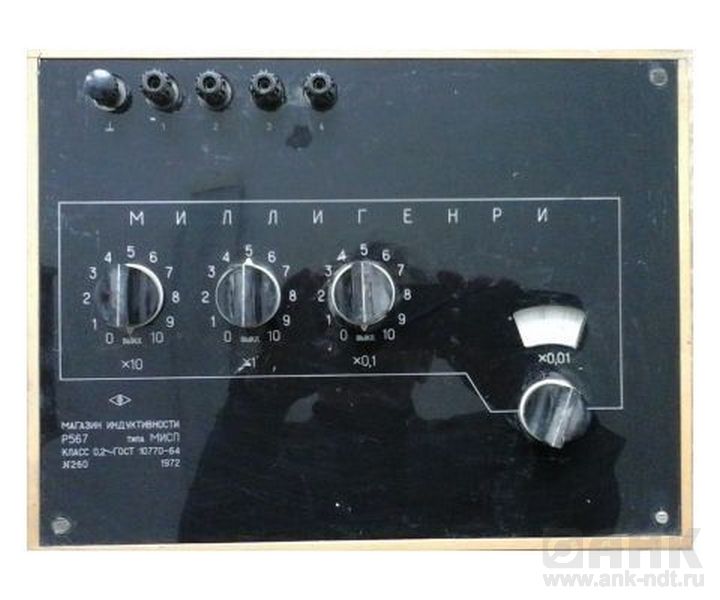 Магазин индуктивности Р567 применяется в качестве меры индуктивности в измерительных схемах приборов переменного тока частотой 200000 Гц за исключением декады 100 мГн.