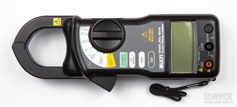 Клещи электроизмерительные, измерение перем. тока утечки/ резистивного тока (Iо/ Ior) 0,4 мА…4 А, перемен. тока нагрузки 2…500 А (50/ 60 Гц), переменное напряжение до 500 В, 2 изм./сек, ЖК-дисплей (разрешение 4000); удержание показаний; автооткл. через 10 мин.; раскрытие 40 мм; 3 х 1,5 В тип «ААА»; 70 х 223 х 34 мм, 440 г