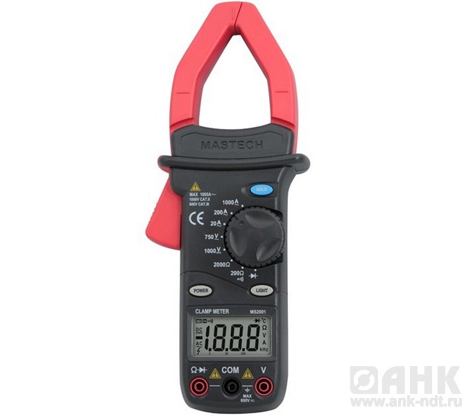 Токоизмерительные клещи MS2008A имеют автоматический выбор пределов измерений и позволяют измерять силу переменного тока, значения постоянного и переменного напряжения и сопротивления.