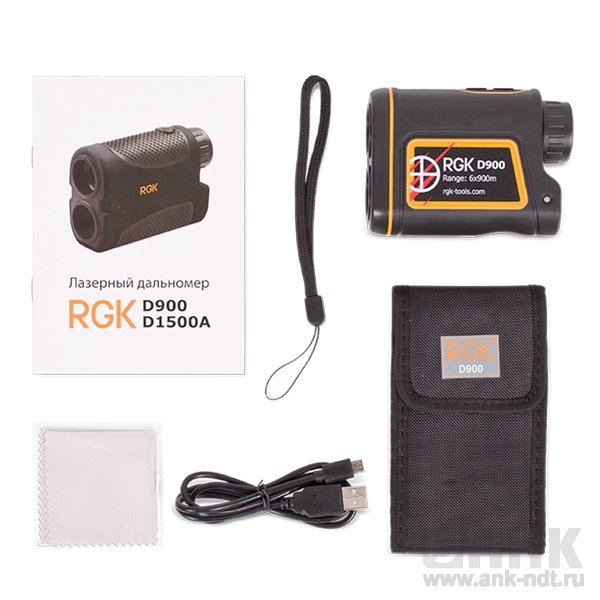 Комплектация: дальномер RGK D900, кофр, ремешок.