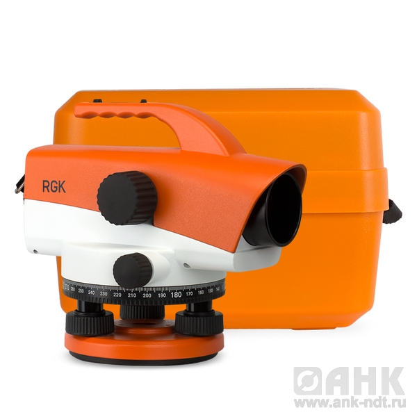 Стандартная комплектация: оптический нивелир RGK C-32, нитяной отвес, юстировочный набор, руководство по эксплуатации, транспортировочный кейс.