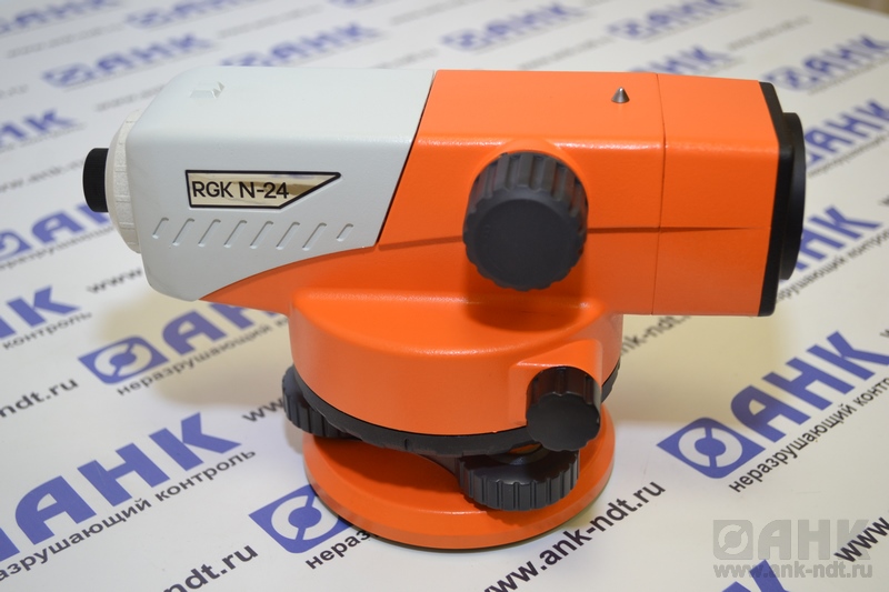 Стандартная комплектация: оптический нивелир RGK N-24, нитяной отвес, юстировочный набор, руководство по эксплуатации, транспортировочный кейс.