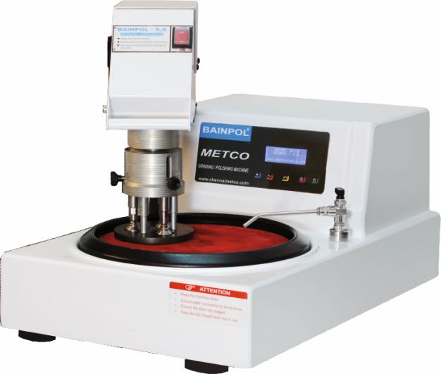 Полуавтоматический настольный шлифовально-полировальный станок Chennai Metco Bainpol SA с сенсорными кнопками управления.Дает возможность работы с тремя образцами одновременно. Высококачественный мотор обеспечивает мягкое изменение скорости вращения