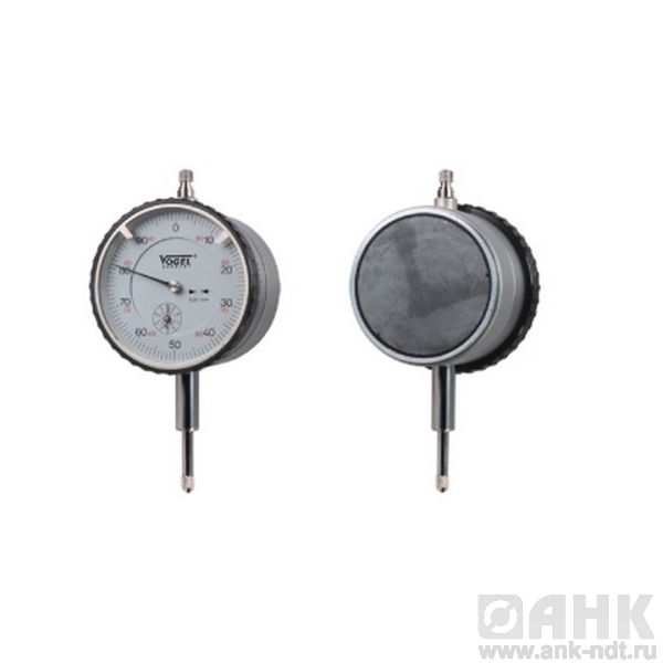 Индикаторы Vogel с задней магнитной крышкой, диапазон от 0-3х0,01 мм до 0-10х0,01 мм, с вращающейся шкалой, предназначены для определения линейных размеров деталей, расположения поверхностей и отклонения формы. Принцип действия индикаторов прост: линейное перемещение стержня головки, который находится в непосредственном контакте с измеряемым предметом, преобразуется при помощи определенного типа механизма (рычажного, зубчатого, рычажно-зубчатого, пружинно-оптического или пружинного) в отклонение стрелки устройства. Все измерительные головки имеют собственное обозначение, которое зависит от основного механизма и указывается в маркировке.