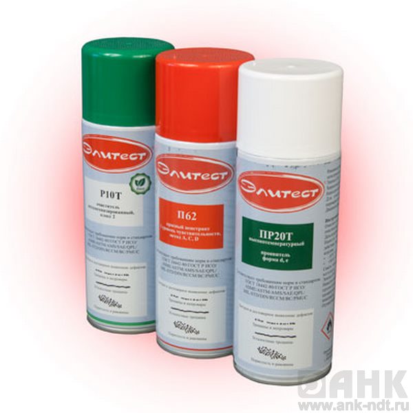 Проявитель обеспечивает покрытие поверхности тонким ровным слоем. Высыхая, состав проявителя Элитест ПР20Т вытягивает пенетрант из полостей, образуя при этом четкое изображение дефектов в местах их расположения на поверхности. При достаточном соблюдении правил подготовки объекта контроля, его очистки от загрязнений, правильной работы с пенетрантом (при температуре изделия выше 100°С рекомендуем пользоваться очистителем Элитест Р10Т и пенетрантом Элитест П62, обеспечивается уверенное выявление окрашенных следов несплошностей. Проявитель Элитест ПР20Т воздействует на пенетрант, образуя контрастный рисунок из дефектов выделенных красным цветом. При этом площадь самих дефектов может быть очень малой.