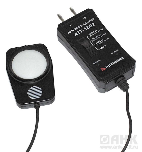- Адаптер для измерения силы света от 0 до 50000 люкс. Аналоговый выход: 0-200 мВ. 3 поддиапазона: 0…2000 люкс, 2000 …20000 люкс, 20000 … 50000 люкс. Погрешность измерений: 5%