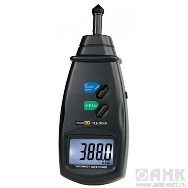 Тахометр цифровой контактный ПРОФКИП ТЦ-35 предназначен для измерения частоты вращения, окружной скорости валов и линейного расстояния.