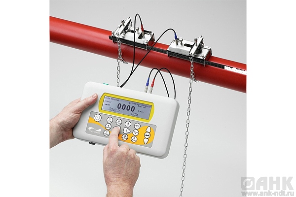Прибор Portaflow 220 - ультразвуковой расходомер, в основе работы которого лежит измерение времени распространения ультразвукового сигнала. Когда ультразвук проходит между датчиками, скорость, с которой звук проходит сквозь жидкость, несколько увеличивается благодаря скорости прохождения жидкости по трубе. Когда ультразвук проходит в обратном направлении, поток жидкости замедляет скорость прохождения звука. Полученная разница скоростей прямо пропорциональна скорости потока в трубе. Измерив скорость потока и узнав площадь поперечного сечения трубы, легко можно вычислить объемный расход жидкости. Не требуется врезки в трубопровод. Установка и измерение занимает считанные минуты, и нет необходимости перекрывать поток или опорожнять систему!