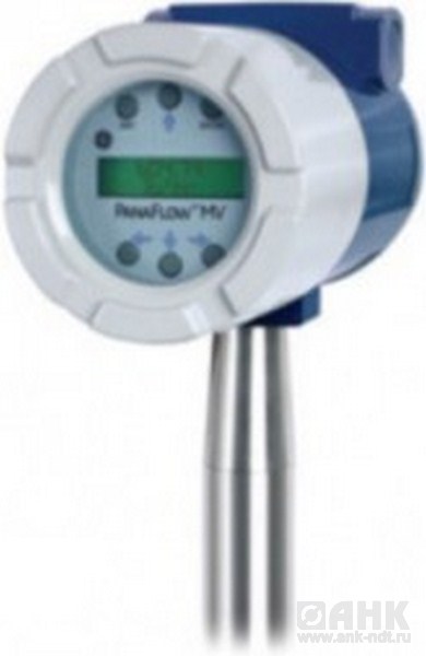 Врезной многопараметрический вихревой массовый расходомер PanaFlow MV82 производства компании «GE Sensing» — вихревой расходомер следующего поколения. Конструкция многопараметрического расходомера PanaFlow MV82 состоит из датчика измерения скорости потока, термочувствительного резистивного датчика температуры RTD и полупроводникового преобразователя давления. Данный расходомер измеряет объемный и массовый расход, температуру и давление пара, газов и жидкостей.