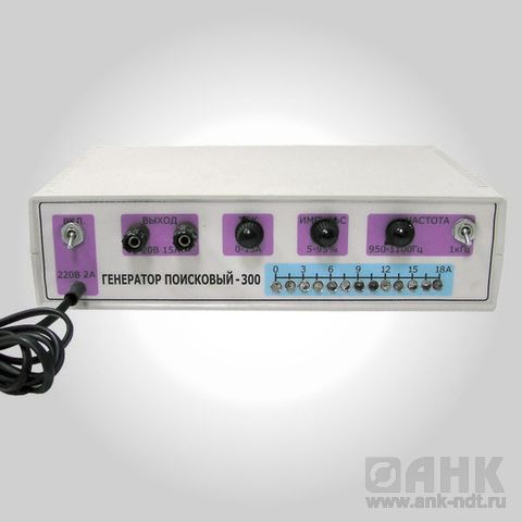 Генератор поиска ГП-300 предназначен для формирования мощного токового сигнала сигнальной частоты при определении мест залегания силовых кабелей или металлических трубопроводов и позволяет длительно выдавать в нагрузку мощность до 300 Вт. С помощью сигнала, формируемого генератором, можно определять места повреждения изоляции подземных трубопроводов.
