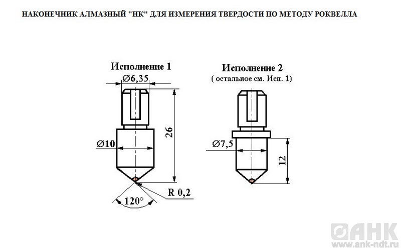 · Роквелл (металлы ГОСТ 9013-59) исполнение Ø: 1,588 (шкалы B, F, G) / 3,175 (шкалы E, H, K) мм