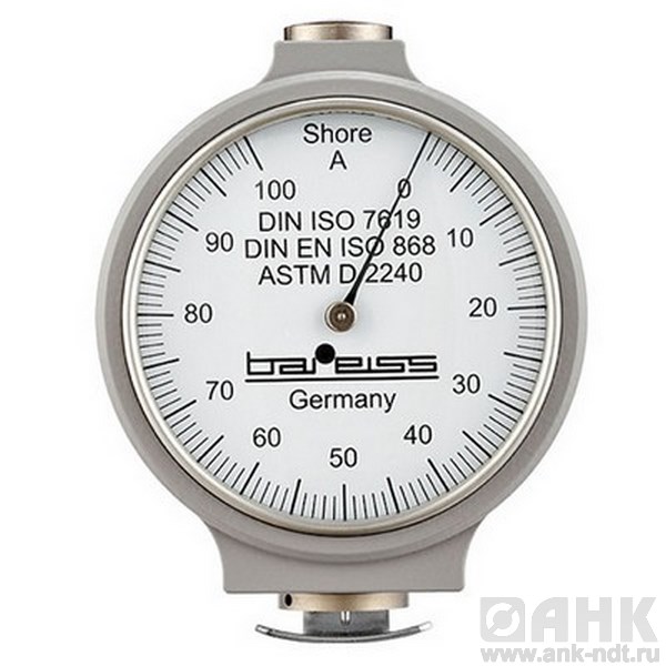 Надёжный прибор для определения твёрдости состоит из массивного алюминиевого корпуса с точно отрегулированной измерительной системой и круглой шкалой, градуированной на 0-100 единиц по шкале Шора.