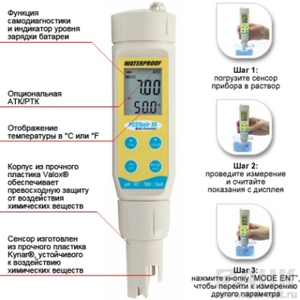 Широкий диапазон измерения pH, с разрешением до 0.01 pH