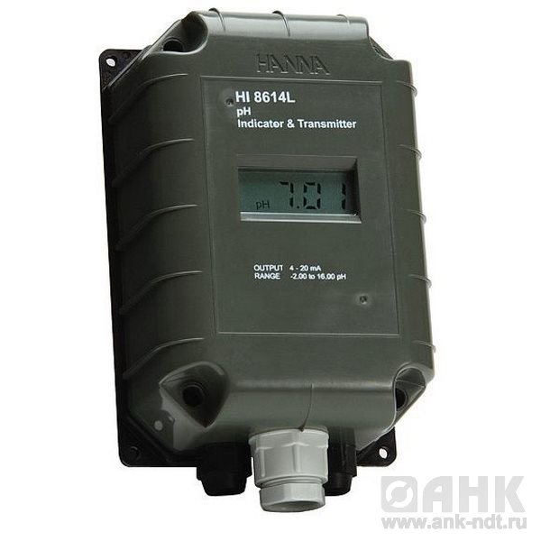 HI 8614L промышленный поточный водонепроницаемый pH-контроллер (трансмиттер) с ЖК экраном и термокомпенсацией.