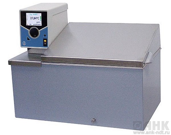 Прибор модификации LOIP LT-417b состоит из погружного термостата-циркулятора LOIP LT-400 и рабочей ванны с односкатной откидной крышкой.