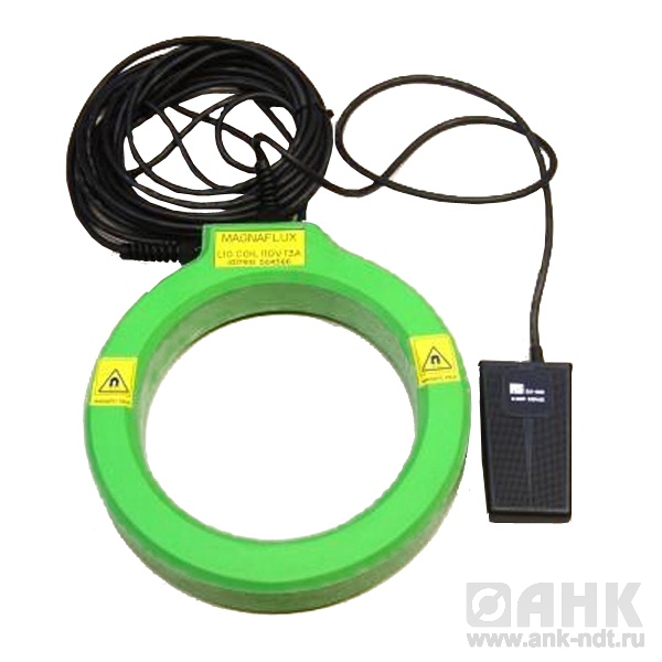 При помощи катушки L10 можно контролировать детали до 250 мм в диаметре. Катушка изолирована износоустойчивым пластмассовым покрытием, снабжена ножной педалью для возбуждения магнитного поля и 10-метровым гибким кабелем питания. Катушка может быть поставлена с понижающим трансформатором (Арт. № 001Т072), который даст Вам возможность работать с катушкой L10 при напряжении 220В/50 Гц.