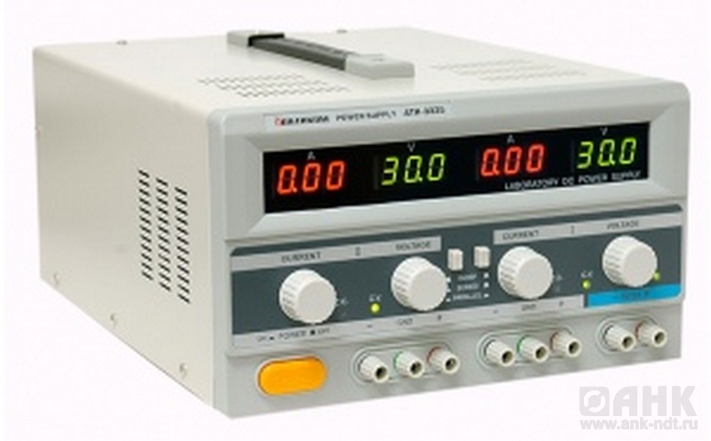 - 2x30 В, 2x5 А. 5 В/3 А. Линейный. 3 канала. 4 цифровых 3-х разрядных LCD дисплея. Последовательное и параллельное соединение регулируемых каналов. Трекинг. Бюджетная серия.