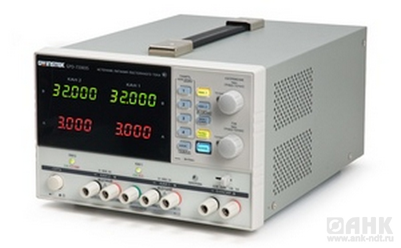 - 4 цифровых индикатора (2 вольтметра, 2 амперметра; послед. (60 В / 3 А) и парал. (30 В / 6 А) соединение выходов; автотрекинг; электронное отключение нагрузки; 4 ячейки памяти, интерфейс USB, масса 7 кг