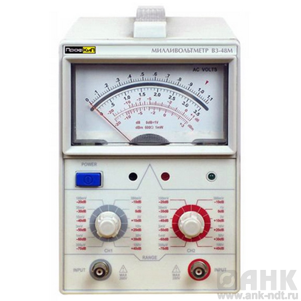 Милливольтметр ПРОФКИП В3-48М предназначен для измерения напряжения, имеет стрелочную индикацию, позволяет производить измерения постоянной и переменной составляющих в частотном диапазоне до 100 кГц.
