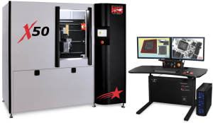 X50 — система позволяет сканировать объекты до 30 см и может использоваться для контроля отказов как непосредственно в лаборатории, так и на производственной линии. Такая конфигурация представляет собой идеальный баланс между мощностью и пространственным разрешением. Система оснащается микрофокусной рентгеновской трубкой открытого типа с максимальным ускоряющим напряжением 240 кВ (нанофокус, микрофокус) и минимальным фокальным пятном 0,5 мкм. Кроме того, имеется возможность установки рентгеновской трубки Dual-Head конфигурации (замена массивной мишени на прострельную и наоборот). Детектор рентгеновского излучения Varex с размером матрицы до 40 х 40 см, позволяющий получить максимальное разрешение и высокий контраст отдельных деталей изображения, с дополнительной вольфрамовой защитой электроники, которая увеличивает срок его эксплуатации. Реализовано шестиосевое позиционирование (вращение, перемещение образца в плоскости держателя, перемещение детектора вдоль оптической оси и наклон платформы +20°/–20°) с режимом микропозиционирования в горизонтальном и вертикальном направлениях — для точного выбора интересующей области сканирования и общего сокращения времени съемки. Поставляется с собственным программным обеспечением для режимов сканирования: цифровая двухмерная рентгенография, трехмерная компьютерная томография с пакетом сверхбыстрой реконструкции и четырехмерная томография (возможность дополнительно проводить механические, температурные испытания, включая движение образца во время съемки). Система имеет возможность проведения координатных измерений и использует аппаратно-программный модуль vorteX для спирального сканирования.