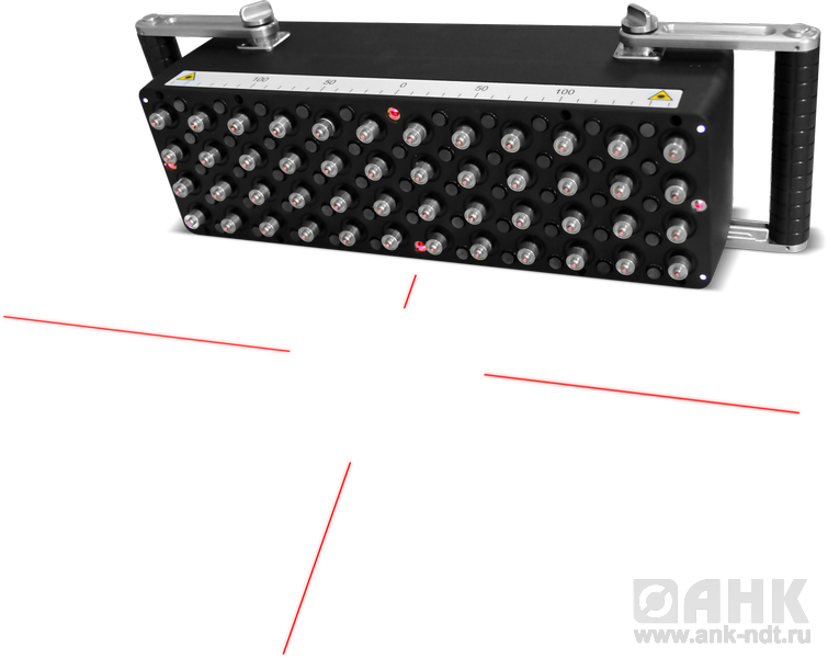 В интерфейс прибора введена возможность использования лазерных лучей, которые проецируются на поверхность объекта контроля, позволяя оператору корректно соблюдать шаг перестановки антенного устройства в процессе полной технической диагностики исследуемого объекта.