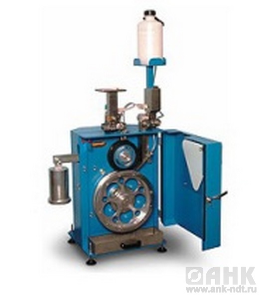 На обратной стороне установки расположена панель управления, на которой задается время испытания. Во время теста на панели отображается скорость вращения и время до конца испытания. На этой установке готовятся образцы для дальнейших испытаний на тестере скольжения (мод. A113).