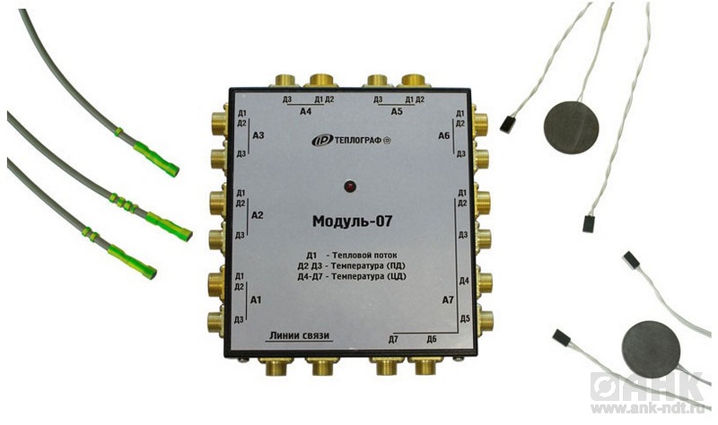 - тип -07 (семь зон контроля): состоит из 7 групп по 3 датчика каждая (датчик теплового потока + 2 датчика температуры поверхности), дополнительно 1...4 датчика температуры (или температуры и влажности) среды
