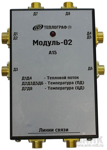 - тип -02 (две зоны контроля): состоит из 2 групп по 3 датчика каждая (датчик теплового потока + 2 датчика температуры поверхности), дополнительно 1...2 датчика температуры (или температуры и влажности) среды