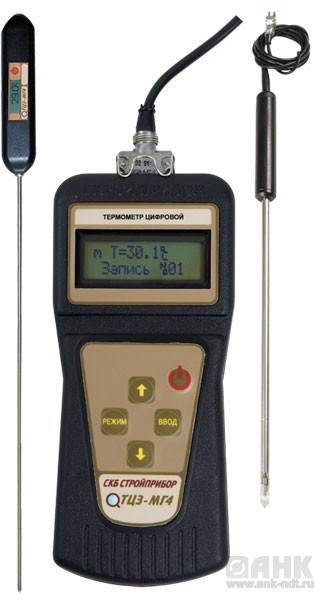Термометры ТЦЗ-МГ4.05 выпускаются с совмещением зонда и электронного блока (выполнен в рукояти). Обеспечивают параллельную передачу данных на ПК с построение графической зависимости. Питание - два элемента типа ААА (3Вольта).