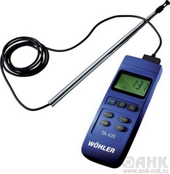 Термоанемометр TA 420 измеряет темпертуру потока воздуха, скорость и объемный расход как в самом канале воздуховода, так и на входе или выходе из него. С помощью термоанемометра вы можете проводить измерения как в отдельных точках, так и выполнять серии измерений по всей длине канала. Для расчета объемного потока предусмотрена функция ввода значений размера канала.