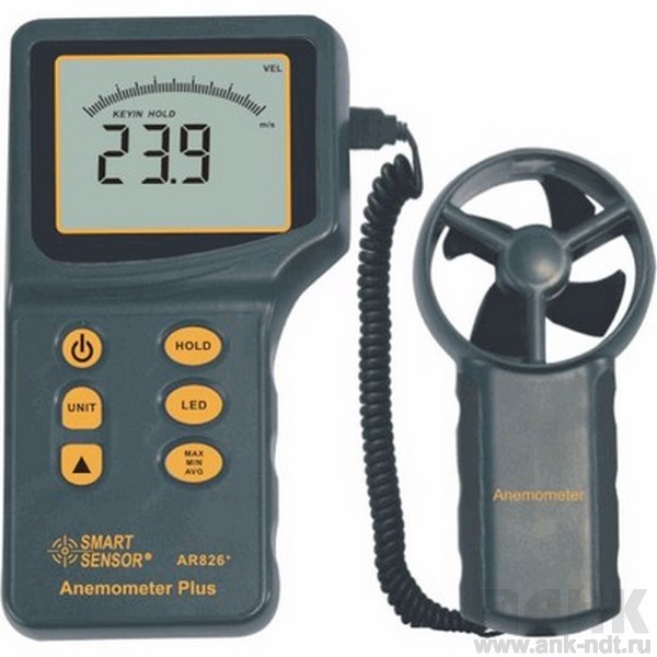 Цифровой анемометр AR826+ позволяет замерить скорость воздушного потока. С помощью функционала анемометра производятся базовые вычисления с измеренными значениями. В корпусе устройства встроен микрокомпьютер, на чьи плечи и ложится обработка измерений. В область использования анемометра попадает широчайший спектр отраслей, таких как металлопрокатная и нефтеперерабатывающая промышленности, энергетическая отрасль, сельское хозяйство. Электронный анемометр AR826+ является настоящей ветровой лабораторией.