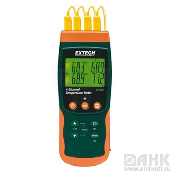 4-канальный термометр Extech SDL200 с функцией регистрации записей до 20Мб на карте SD (2Гб), программируемая пользователем частота измерений от 1 до 3600 секунд, регистрация показаний с временными отметками и датами реального времени.
