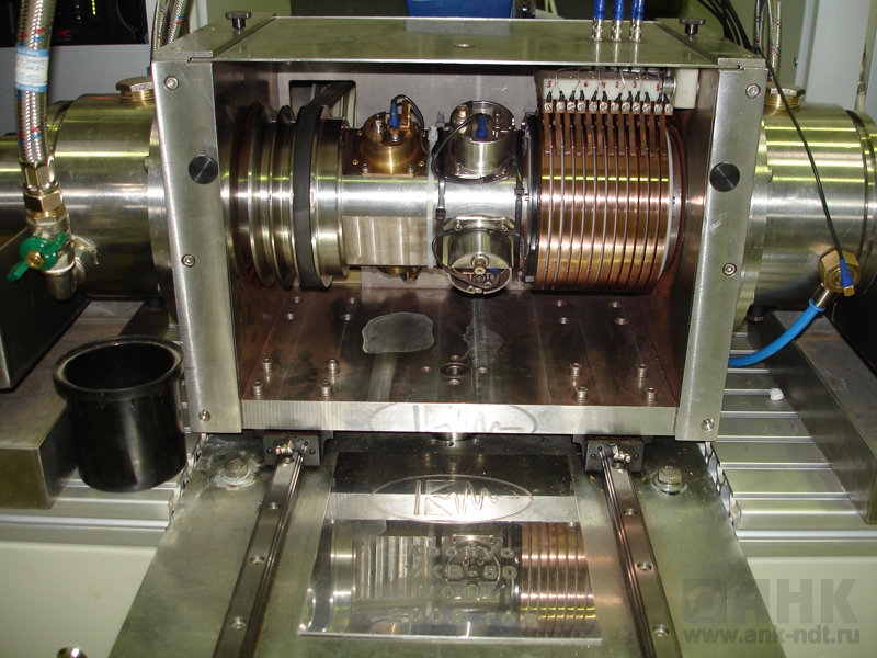 Конструктивно установка состоит из двух промышленных 19" стоек и станины с ротационным блоком контроля и механизмами протяжки. На контроль трубы подаются, поочередно, отдельно друг от друга либо состыкованные друг с другом. Контролируемая труба, подается в механизм протяжки на входе установки, который перемещает трубу в узел центровки, откуда она попадает в блок ротационного контроля. При выходе из блока ротационного контроля и механизма центровки, труба попадает во второй (выходной) механизм протяжки, который подает ее в приемный лоток.