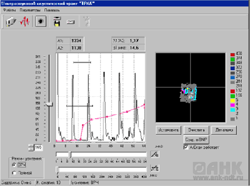 На управляющей PC, при помощи прикладного ПО (поставляемого в комплекте) оператор формирует необходимые параметры контроля и производит настройку акустического тракта: по частоте, амплитуде и форме зондирующего сигнала.