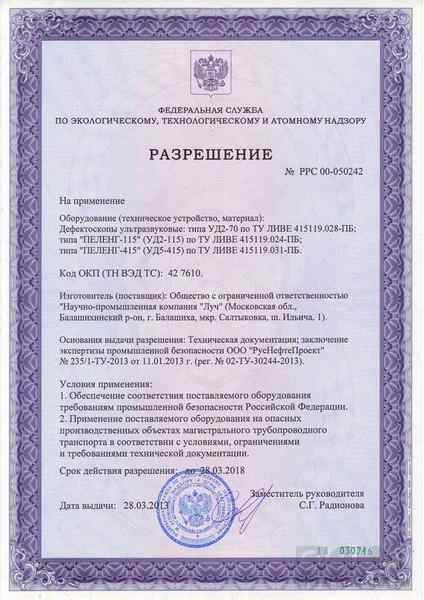 - гарантию на прибор УД2-70 и сопутствующие принадлежности;