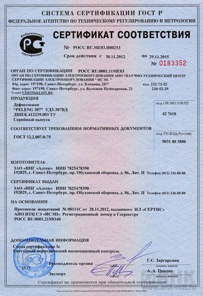 | Используемые вихретоковые преобразователи | серии ПН для магнитных сталей (частота 10 ÷ 100 кГц) серии ПФ для немагнитных сталей, титана, алюминия (частота определяется преобразователем) | |
