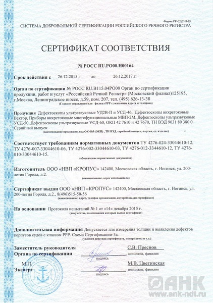 - гарантию 3 года на прибор УСД-60;