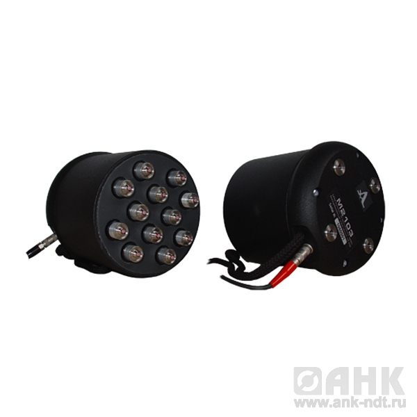 2 решетки М2103 используются совместно с прибором А1220 МОНОЛИТ и применяются для сквозного прозвучивания объектов из бетона и железобетона в диапазоне толщин от 200 до 2500 мм. Также оптимальным является применение данных решеток для обследования бетонных колонн с густоположенной арматурой: в данном случае контроль эхо-методом, используя решетку М2502, осложнен, а порой и невозможен из-за большого уровня структурного шума. Использование в данном случае решеток М2103 позволяет получить хорошее соотношение сигнал / шум и практически избавиться от влияния взаимной ориентации преобразователей относительно друг друга (как в случае использования одиночных преобразователей Т1802).
