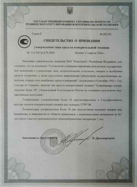 Булат 1S – модель ультразвукового толщиномера с увеличенными, по сравнению с Булат-1М, функциональными возможностями, расширенной номенклатурой датчиков, улучшенной методикой контроля изделий с шероховатой поверхностью. Автоматическая регулировка усиления.