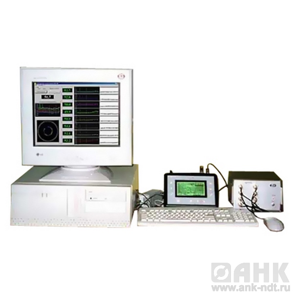 Система построена на использовании одного дефектоскопа УД2В-П45 в качестве измерительного и дефектоскопического блока, 8-канального коммутатора и персонального компьютера (ПК), обеспечивающего управление работой дефектоскопа, коммутатора и визуализацию контрольной информации по всем каналам и протоколирование контроля. Кроме этого ПК используется для калибровки каждого канала по толщине, чувствительности и браковочным признакам.