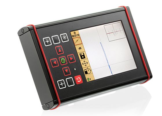 Дефектоскоп оснащен стандартными промышленными разъемами для подключения преобразователей, большим цветным дисплеем с контрастным изображением, хорошо читающимся и при дневном освещении.