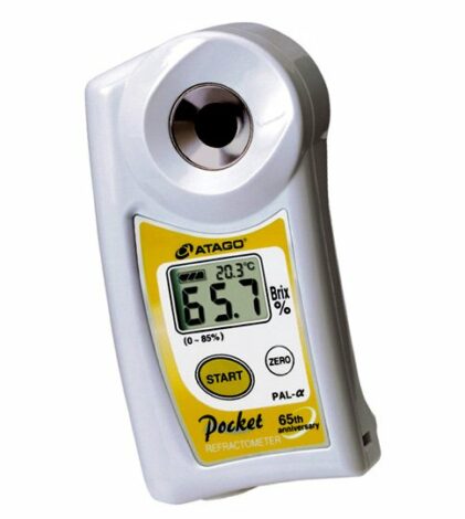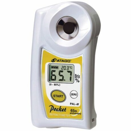 Ручной цифровой рефрактометр PAL-α имеет большой диапазон измерений (0-85%) и имеет невысокую стоимость. PAL-α используется для измерения большого колличества образцов. Во всех случаях, когда концентрация веществ находится в диапазоне 0-85%Brix, можно использовать PAL alpha. PAL-α водонепроницаем, поэтому его можно мыть под струей воды. PAL-α обладает такими же достоинствами, как и остальные рефрактометры серии PAL. Для контроля точности рефрактометра во всём диапазоне используйте рефрактометрические жидкости «Сахарозка». Поверка рефрактометра PAL-α осуществляется в аккредитованной лаборатории АНК и занимает от 1 до 5 дней.