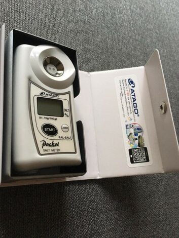 Цифровой солемер PAL-SALT использует метод электропроводимости для измерения уровня солёности растворимых веществ в жидкости. PAL-SALT является первым солемером ATAGO со встроенной функцией оффсeта, позволяющей выводить результаты с автоматическим вычислением поправочного коэффициента. Данную функцию можно использовать, например, для автоматического ввода коэффициента разбавления или для ввода собственного поправочного коэффициента, который позволит получать результаты, согласующиеся с методом титрования. Для калибровки или проверки точности работы солемера Вы можете приобрести ГСО «NaCl» номиналом 2,5%. Поверка солемера PAL-SALT осуществляется в аккредитованной лаборатории АНК и занимает от 1 до 5 дней.