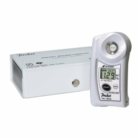 PAL-SALT Mohr позволяет получать значения концентрации соли, согласующиеся со значениями, если бы они были получены методом Мора (титрования). Как и другие солеметры, PAL-SALT Mohr использует метод электропроводимости для измерения образцов. Этот прибор также имеет встроенную функцию оффеста, позволяющую выводить результаты с автоматическим вычислением поправочного коэффициента. Для калибровки или проверки точности работы солемера Вы можете приобрести ГСО «NaCl» номиналом 2,5%. Поверка солемера PAL-SALT Mohr осуществляется в аккредитованной лаборатории АНК и занимает от 1 до 5 дней.