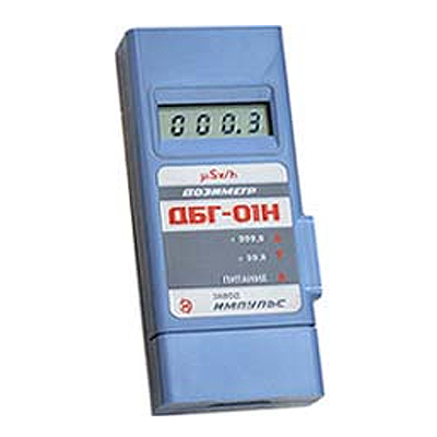 Профессиональный дозиметр ДБГ-01Н с двумя счетчиками Гейгера типа СБМ-20. Может определять источники радиоактивного загрязнения и оценивать уровень мощности эквивалентной дозы. Поверка дозиметра ДБГ-01Н проходит в аккредитованной лаборатории АНК и занимает от 1 до 5 дней.