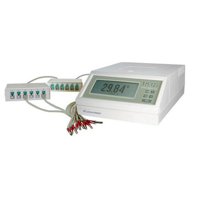 «Термоизмеритель ТМ-12м.4» − модификация, у которой 12 ТС подключаются либо непосредственно к прибору, либо через 2 коммутатора, которые могут быть удалены от прибора на расстояние до 100 метров. К каждому коммутатору можно подключить от 1 до 6 ТС.